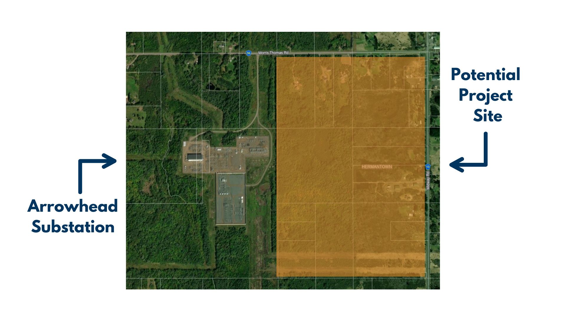 The Arrowhead Substation has been located directly west of this proposed site since the 1970s. This important piece of Minnesota Power infrastructure, which continues to receive updates and upgrades over the past five decades of use, will serve the potential data center project.